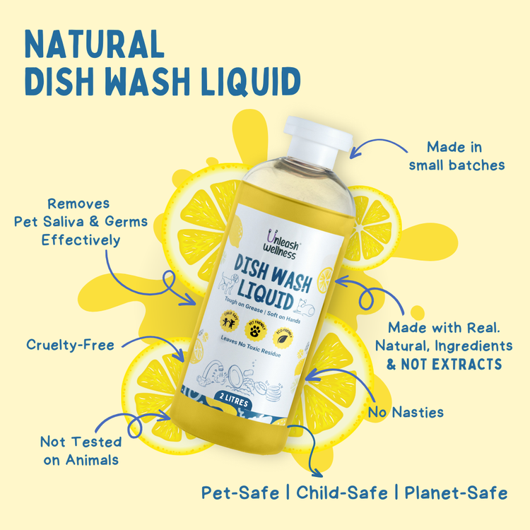 Introducing Unleash Wellness® Natural Dish Wash Liquid for Pets with Lime - A Child and Pet-Safe Cleaning Solution for Bowls and Dishes. This gentle yet effective formula is specifically designed for cleaning dishes, ensuring your furbaby's eating area remains safe and hygienic. Whether you're washing food bowls, water dishes, or pet accessories, our Natural Dish Wash Liquid provides thorough cleaning without harmful residues.